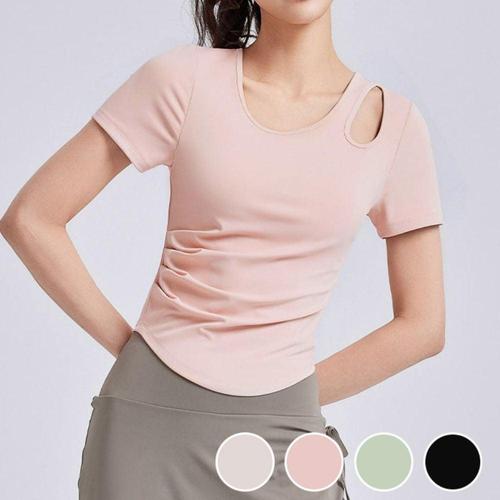 원덩 요가 반팔티 여성 헬스 운동 어깨 셔링 WFL0HMP