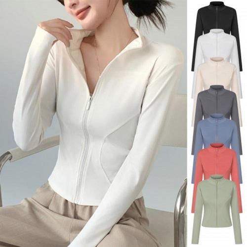 여성 운동복 핑거홀 트임넥 긴팔티 요가 필라테스 5색
