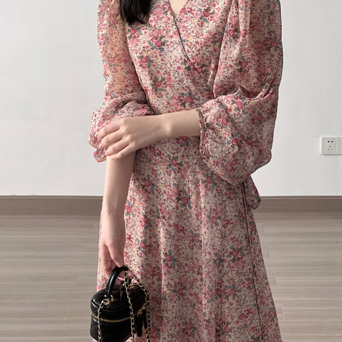 [드레스허그]요정 쉬폰 플리츠 플라워 드레스
