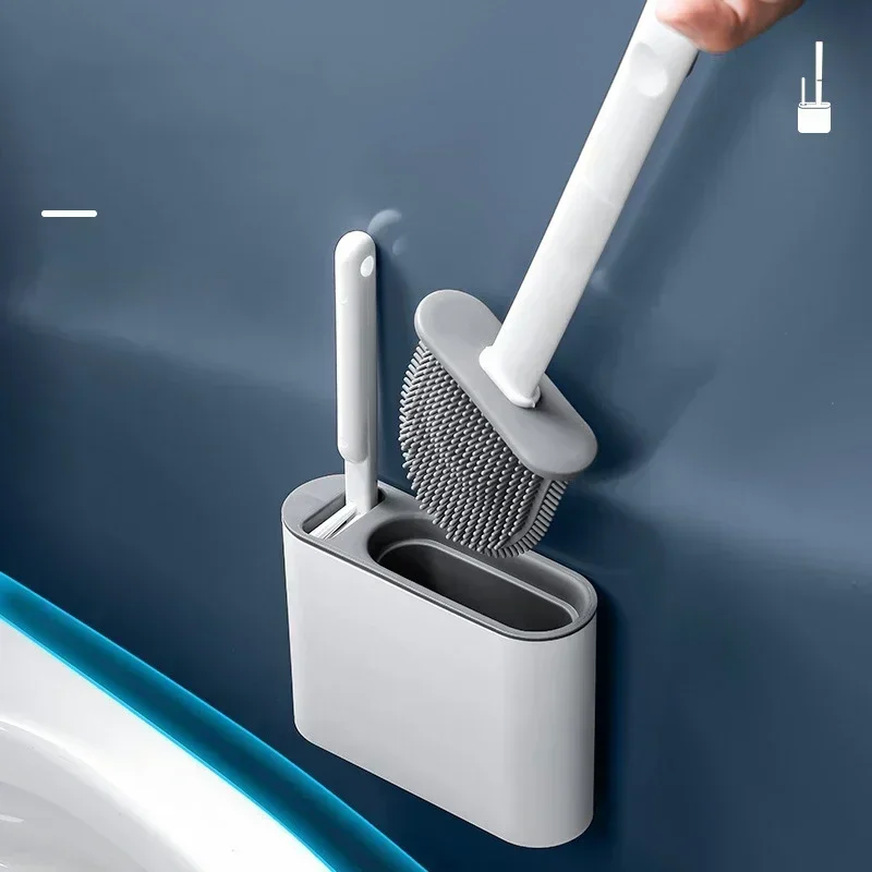 벽걸이형 실리콘 화장실 브러시 세트 - 간편한 설치, 긴 손잡이, 죽은 코너 없음, 효율적인 청소, 홀더가 있는 휴대용 디자인