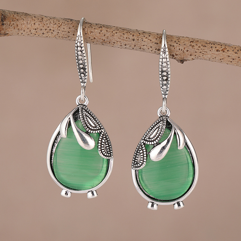 TEMU 일상적인 착용이나 생일이나 기념일 선물로 적합한 우아한 빈티지 스타일 녹색 합성 에메랄드 드랭 귀걸이, 구리 포스트 귀걸이