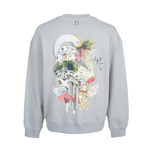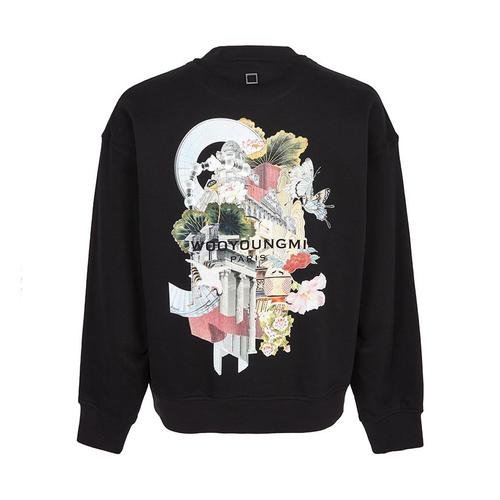우영미 남성 백 스퀘어 라벨 라운드 코튼 스웨트 맨투맨 아이보리 W233TS21712I