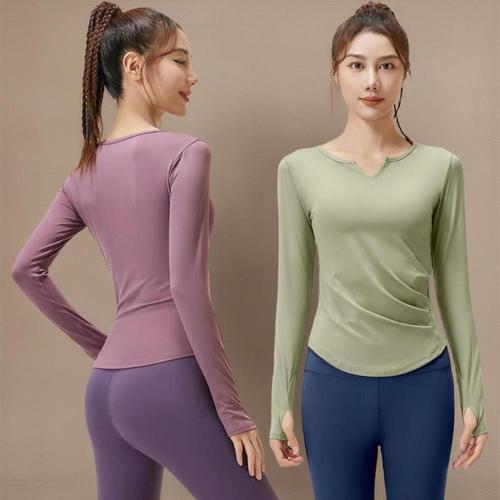 [미라클세븐]여성 요가 긴팔 티셔츠 브이넥 스판 셔링 운동복