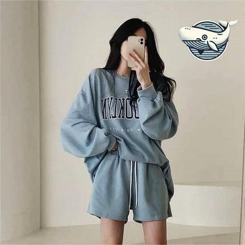 [에이치플러스몰]캐주얼 레터링 긴팔 상의 반바지 여성 운동복