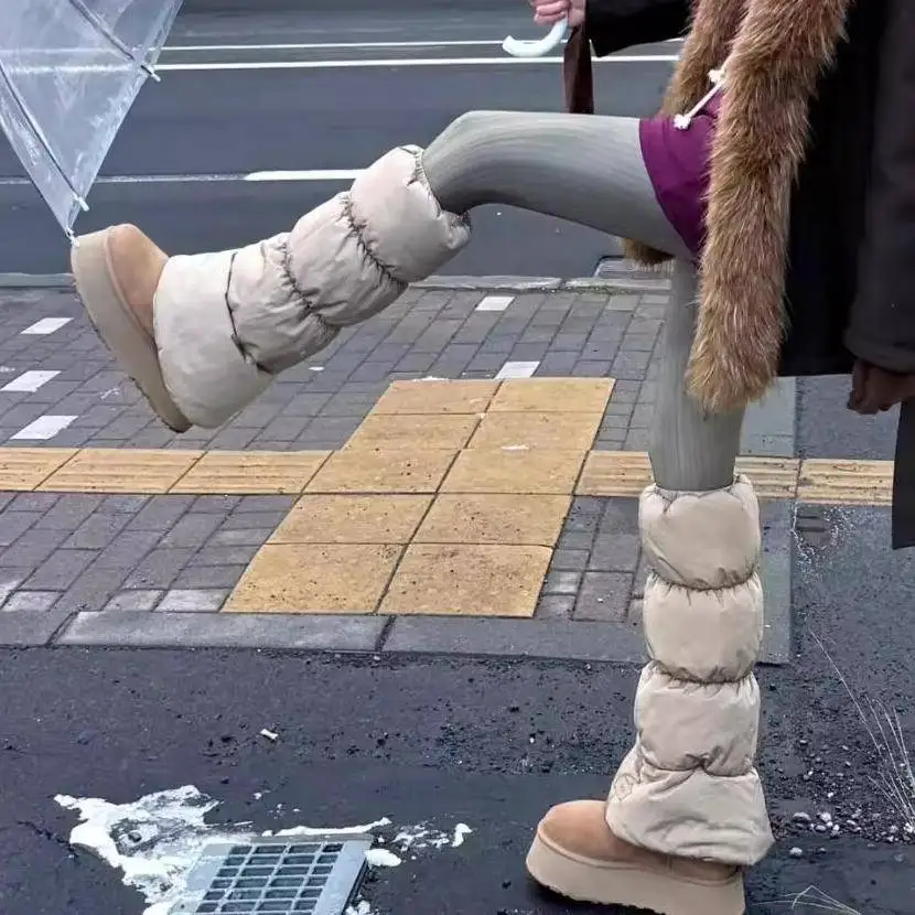 두꺼운 다운 레그 워머 무릎 패드 드로스트링 방한 따뜻한 가을 겨울 필수 부츠 양말 세트 여성용