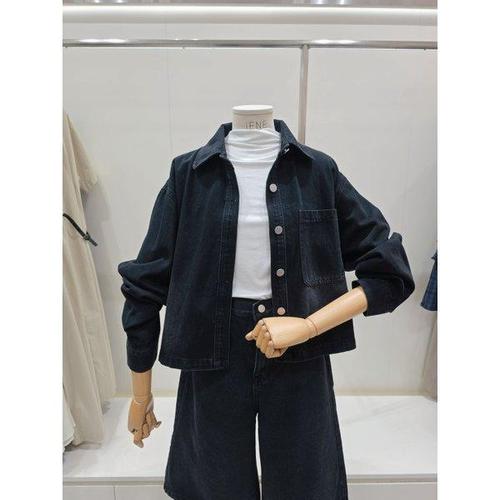[셀러허브_여성트랜드패션]ONM 빈티지 워싱 라운드넥 청자켓 여리핏 숏크롭 데님