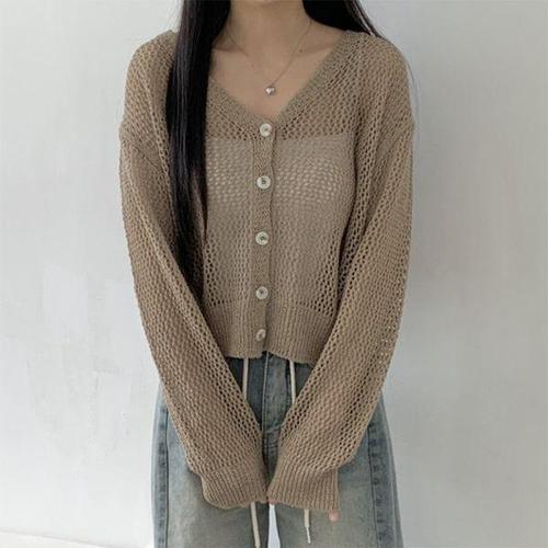 [다잇템]여자 스웨터 워터밤 V넥 비침 네트 가디건