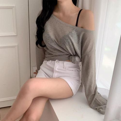 [옷자락]여자 비키니커버 시스루 보트넥 롱슬리브 워터밤 티셔츠