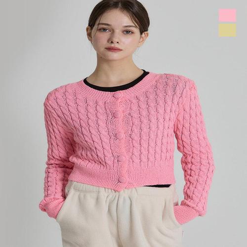 [원더플레이스][더블유스탠다드(W STANDARD)] 우먼 2447 캔디 꽈배기 숏 라운드 가디건