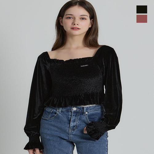 [원더플레이스][더블유스탠다드(W STANDARD)] 우먼 벨벳 스모킹 스퀘어넥 블라우스