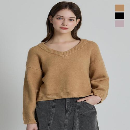 [원더플레이스][더블유스탠다드(W STANDARD)] 우먼 브이넥 솔리드 니트 풀오버