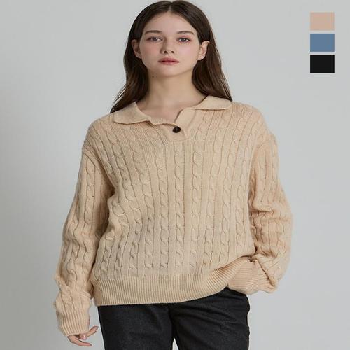 [원더플레이스][더블유스탠다드(W STANDARD)] 우먼 카라넥 케이블 니트 풀오버