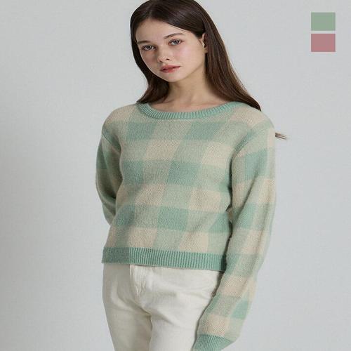 [원더플레이스][더블유스탠다드(W STANDARD)] 우먼 체크 패턴 풀오버 니트