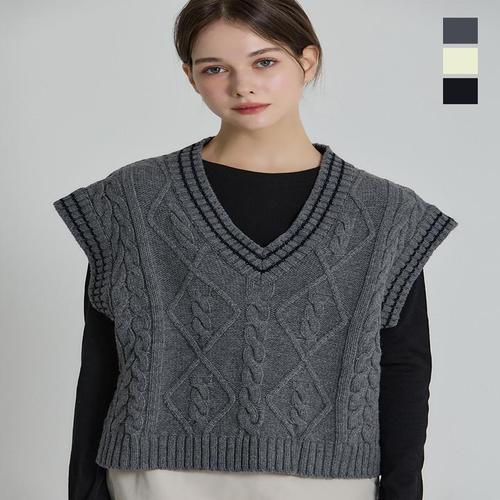 [원더플레이스][더블유스탠다드(W STANDARD)] 우먼 브이넥 케이블 배색 베스트