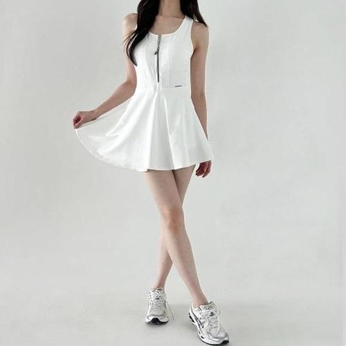 [옷자락]여자 스포티 패드내장 지퍼 투인원 나시 미니 원피스