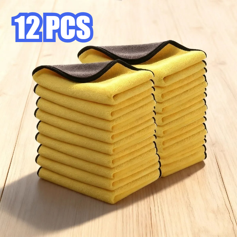 TEMU 12개입 두꺼운 극세사 차량 워시 타월 | 흡수성, 재사용 가능, 차량 디테일링, 가정 청소, 먼지 제거, 창문 & 식기 닦기 - 노란색, 초록색, 보라색, 분홍색, 파란색으로 제공 - 폴리에스터 소재