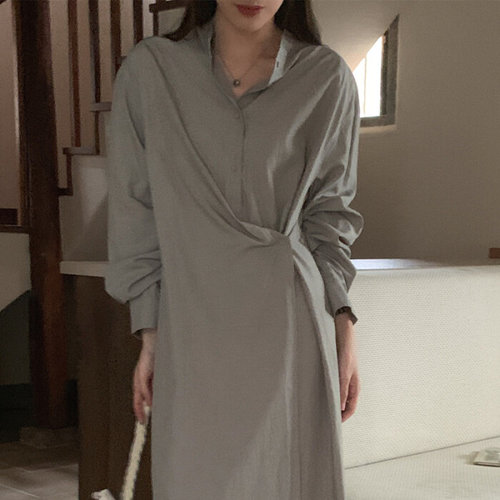 웬디 / 브이넥 루즈핏 롱 반팔 원피스 WP13166
