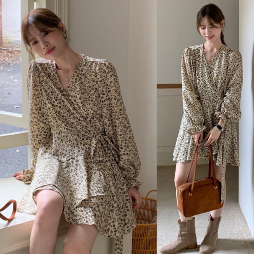 웬디 / 프릴소매 플로랄 V넥 원피스 WP13584