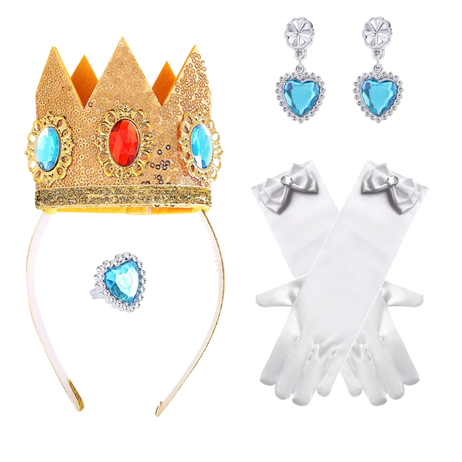 어린이 할로윈 소녀 공주 복장 스팽글 크라운 다이아몬드 반지 귀걸이 화이트 보우 장갑 어린이 요정 마법 지팡이