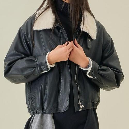 [유니케]퍼 하이넥 변형 카라 레더 자켓