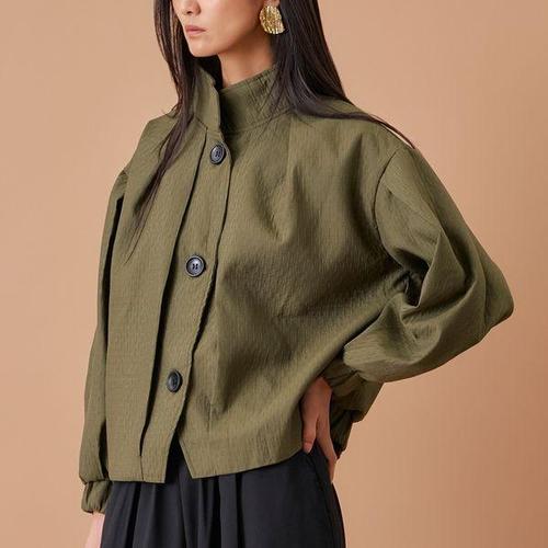[유니케]자수 하이넥 카라 플래킷 자켓