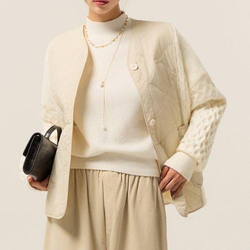 [유니케]백 브이컷 조끼+시스루 목폴라 세트