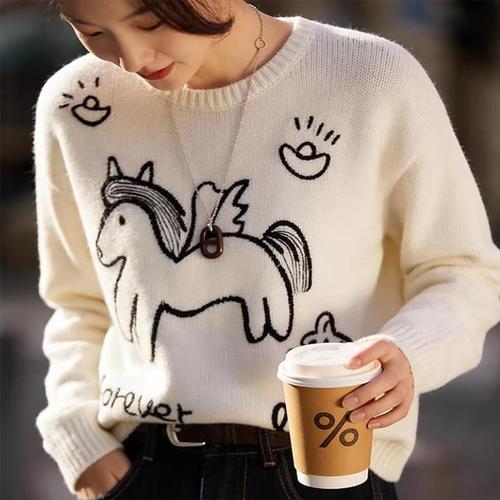 [패션시그널]큐티 유니콘 라운드넥 니트 E3A702