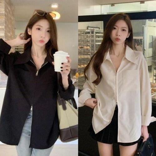 풀슬리브 상의 셔츠 지퍼후드 블라우스 넥카라 데일리룩스테디셀러 WFJIVPR