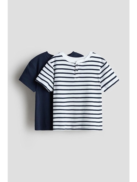 [에이치엔엠] 헨리 티셔츠 2피스 세트 네이비 블루/스트라이프 1337125001