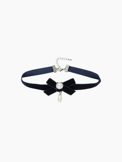 [키앙] 드롭 펄 신데렐라 리본 쵸커 목걸이