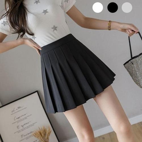 [엄지척]스판 속바지 일체형 데일리 무지 밴드 플리츠 스커트_19956825_667501