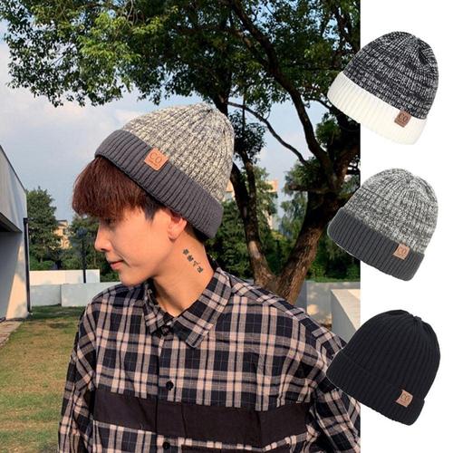 캐쥬얼 배색 포인트 로고 따뜻한 융털기모 마블 비니 WFG8EW1