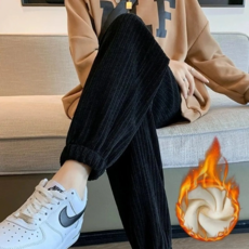 (완전 편한) 1+1 여성 기모 융털 코듀로이 방한 조거 팬츠 겨울 빅사이즈 두꺼운 양털 뽀글이 안감 골덴 작업복 배기 팬츠 외출 부드러운 통바지 밴드 보온 따뜻한 캐쥬얼 바지