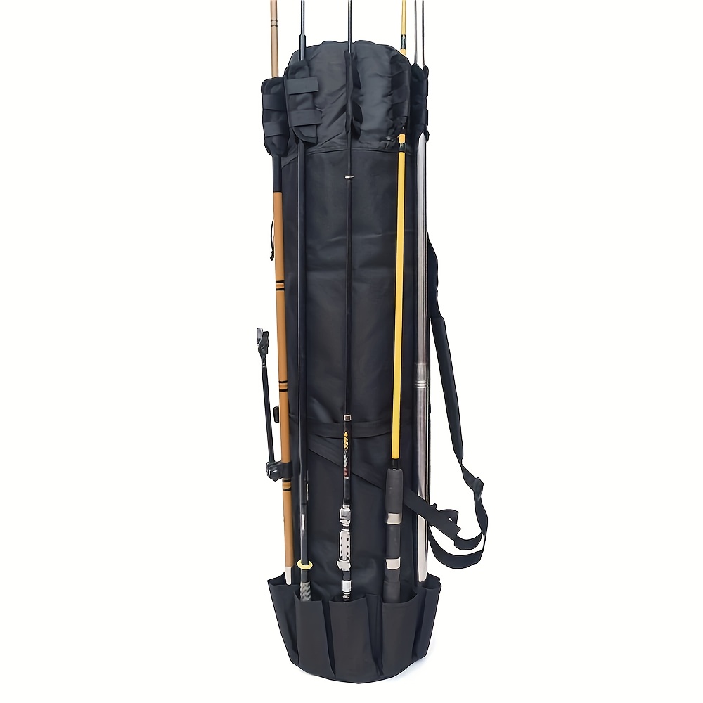 TEMU 1개 내구성 강한 접이식 낚싯대 케이스 - 대용량 멀티낚시대 홀더, 조절 가능한 스트랩 포함, 캠핑 및 야외 스포츠용 튼튼한 원단 (혼합 색상), 간결하고 견고한 디자인의 낚싯대 보관함