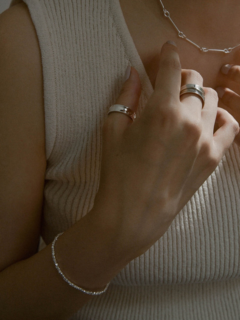 [신상오픈런]은볼 심플링 레이어드 비즈줄 실반지 실버링 (29965319)