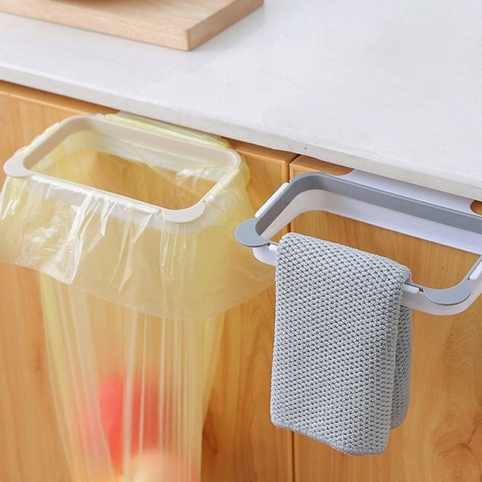 주방 쓰레기 랙 캐비닛 도어 쓰레기 봉투 홀더 교수형 브래킷이있는 스테인레스 스틸 쓰레기 랙 주방 가제 쓰레기통