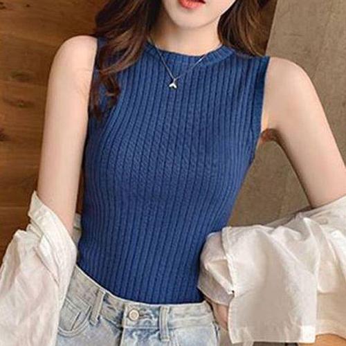 [에이치플러스몰]슬림핏 여자 크롭 민소매 나시 티셔츠 유넥 여름 이너