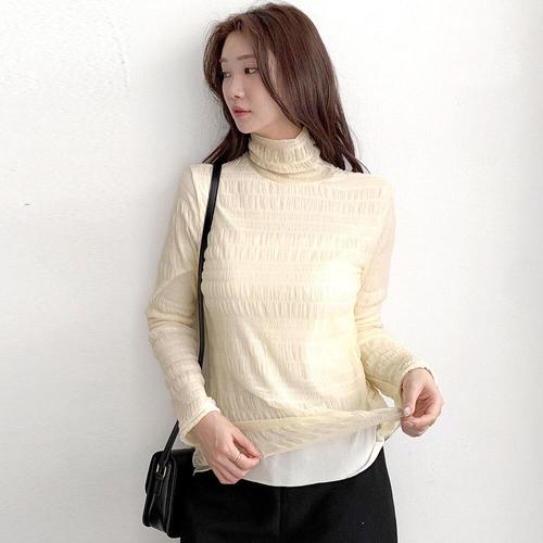 [옷자락] 여자 레이스 셔링 폴라 융안감 겨울 이너 티셔츠