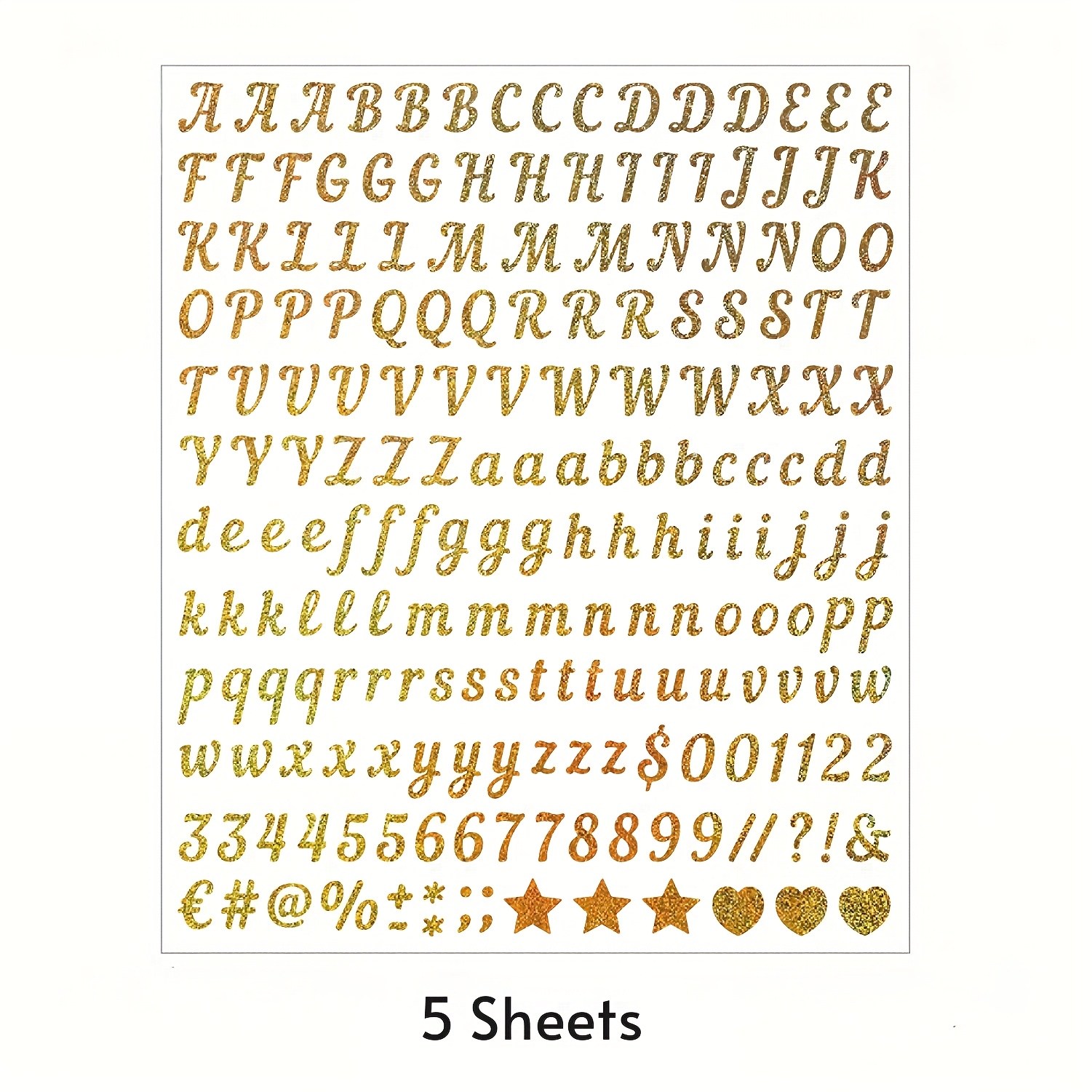 TEMU 1000개 글리터 글자 스티커 5장, 숫자 기호 스티커, 비닐 알파벳 스티커, 0.5인치 소형 글자 스티커, 스크랩북, 머그잔, 우편함, 공예, 스파이스 병, 네일 폴리쉬 병용, 골드, 실버