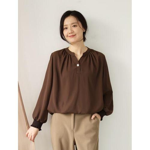 [보니스팍스]셔링 이중카라 핀턱 소매 블라우스 (택가격: 119000원)
