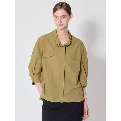 샵앤) 여성 카라넥 유니크 이중 단추여밈 긴팔 롱 블라우스 DGB-WBL-4742-카키