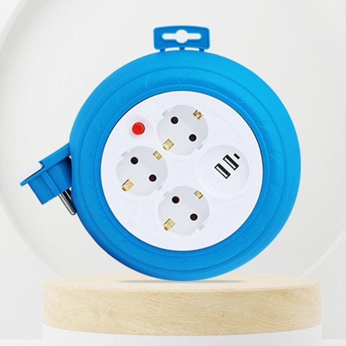 러그박스 손잡이 멀티탭 라운드 릴선 3구 USB 2포트 10M 1.5SQ (MT) 이지콕 플러그 캠핑 접지 코드릴