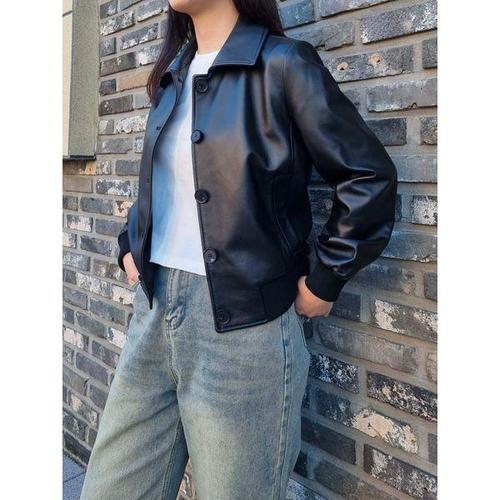 [보스룸] 이태리산 양가죽 포인트 도톰 오픈 카라 포켓 스티치 자켓 라이더 아우터