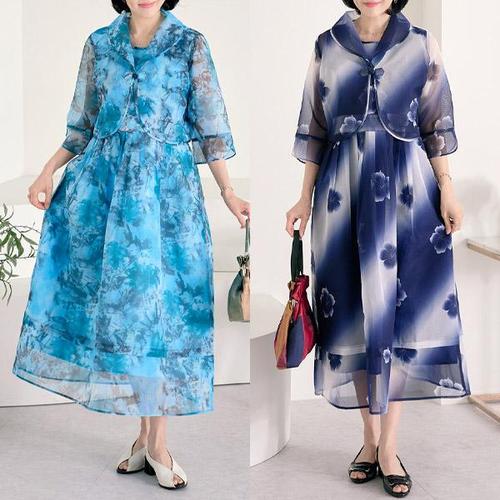 엄마옷 마담4060 플레어인견생활한복원피스-QKC2503005-