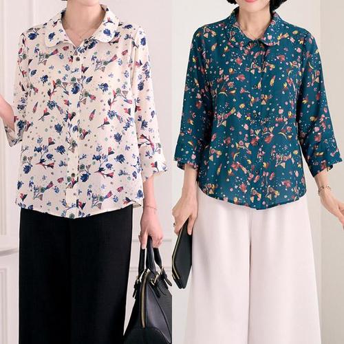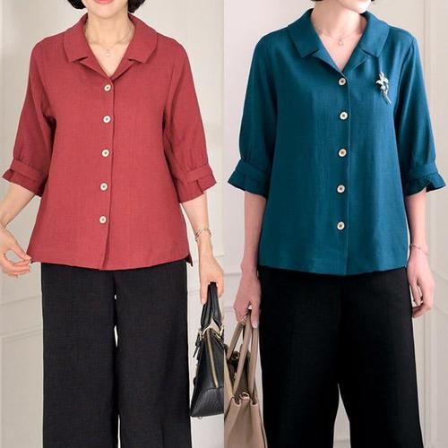 [이브바바]여성 여름 인견 무지 7부 카라 오픈 셔츠블라우스 중년 엄마옷 상의
