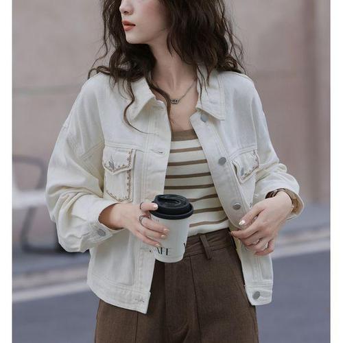 [패션시그널]데일리픽 자수라인포켓 워싱 데님자켓 EB7299