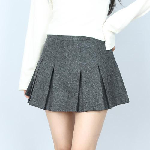 [파라노말샵](속바지) 모직 핀턱 플리츠 미니 스커트 (파라노말샵)
