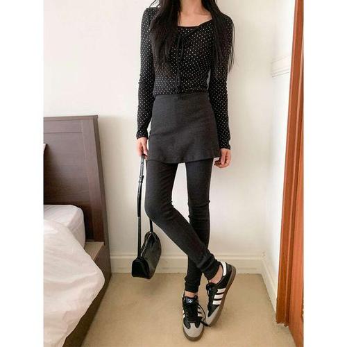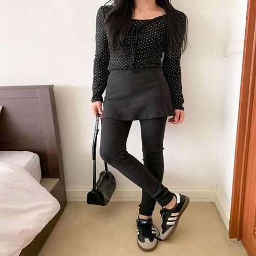 [하젤]카로 투인원 일체형 스커트 면레깅스 치깅스_F4266