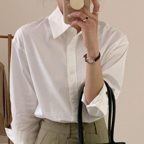 여성 일자핏 긴팔 카라 셔츠 스탠다드 블라우스 WFKZPYH