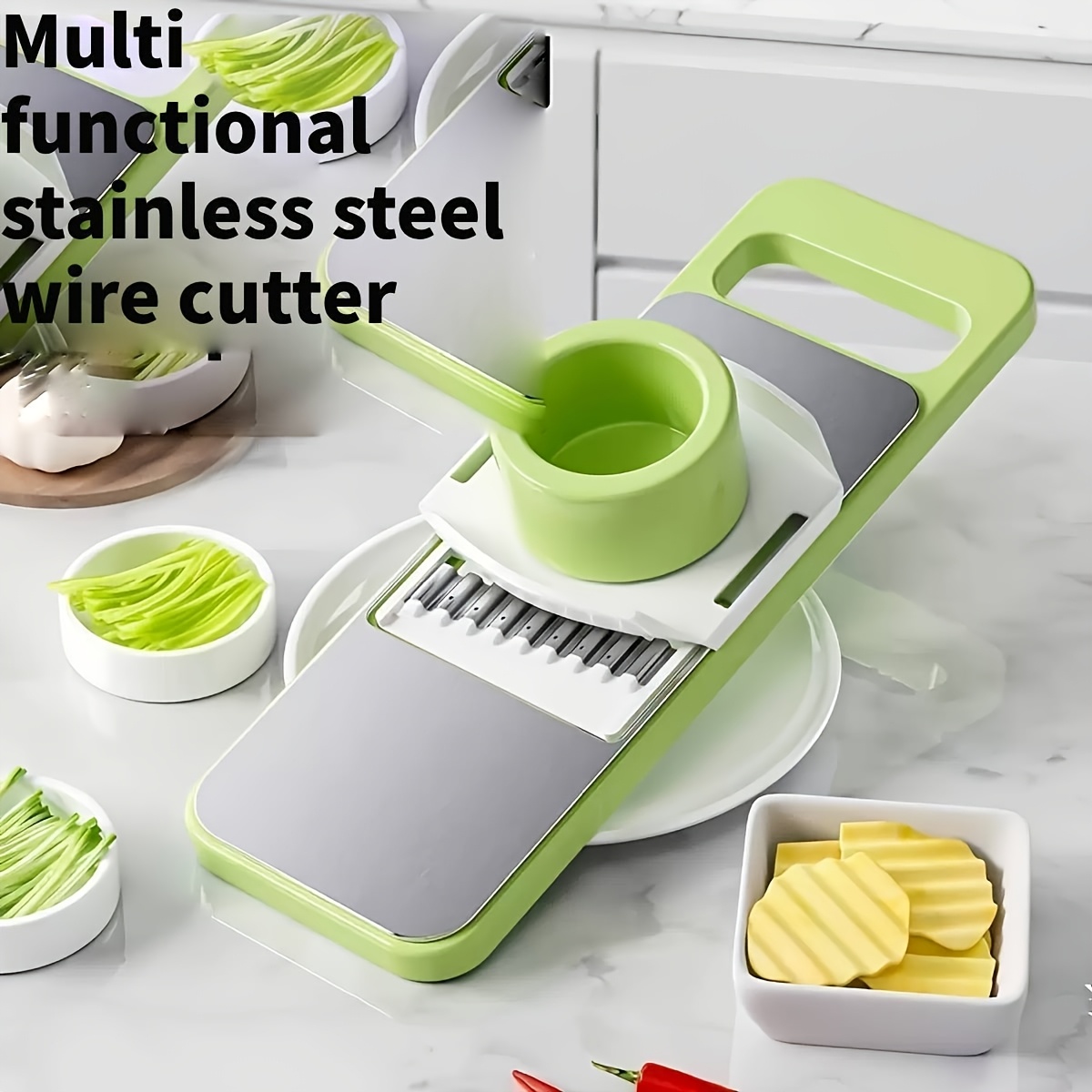 TEMU 7pcs 스테인리스 스틸 다기능 야채 슬라이싱 및 분쇄 세트 (교체 가능한 날 포함) - 다양한 야채용 수동 주방 플레닝 도구, 야채 슬라이싱 세트, 주방 가제트, 세련된 주방용품, 내구성 좋은 주방용품, 채써는기계, 야채슬라이서, 양배추채칼, 슬라이서, 치즈그라인더, 채칼믹싱볼세트